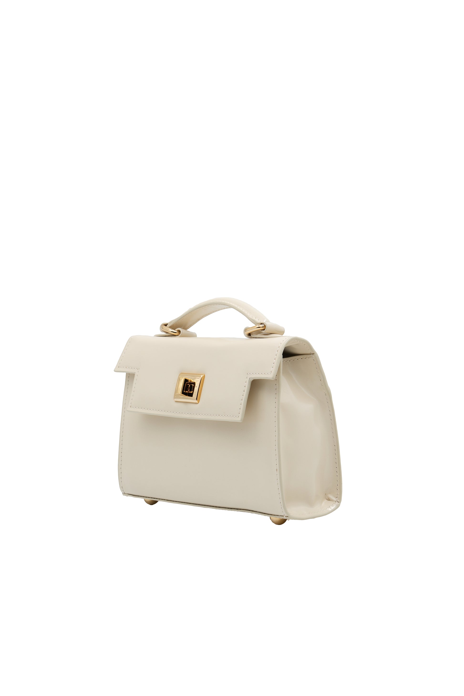 Bolsa Cris | Couro Box | Off White com Ferragem Dourada