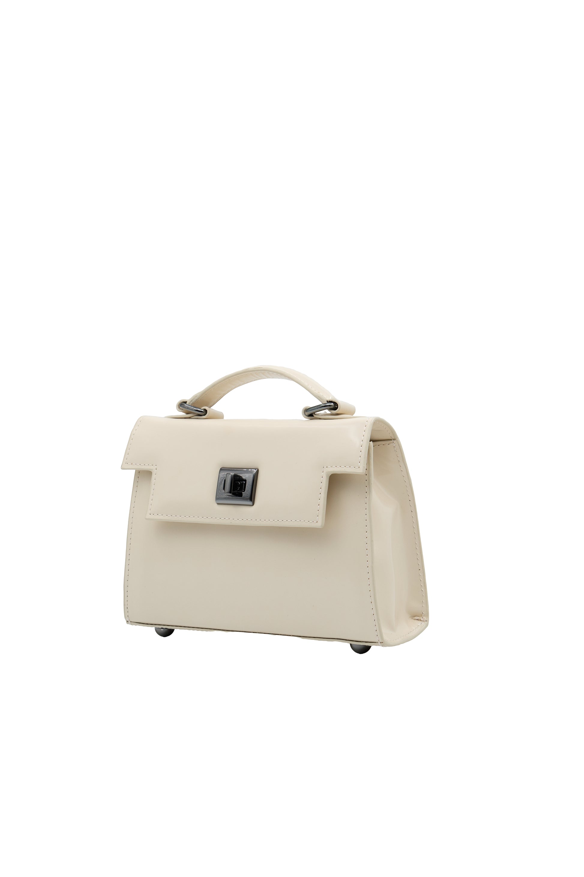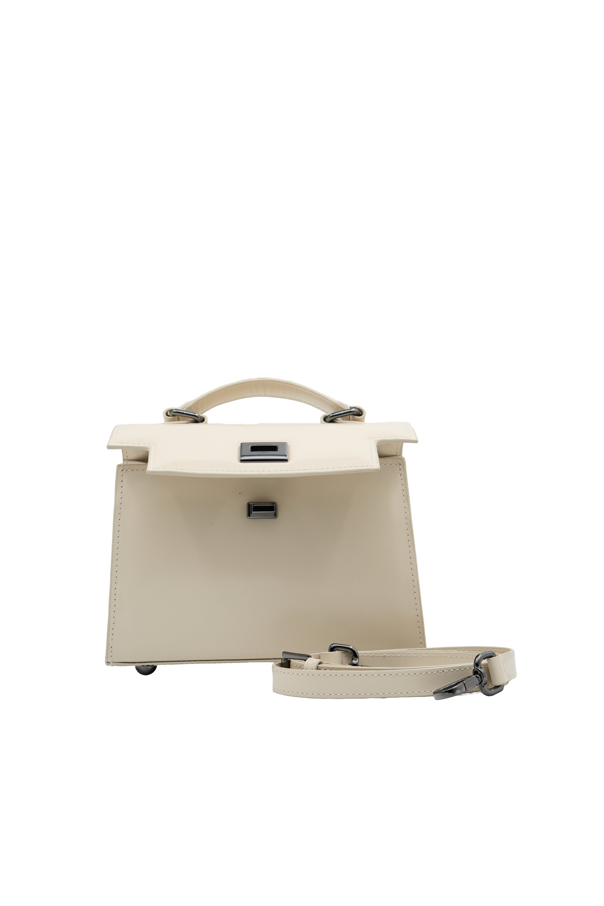 Bolsa Cris | Couro Box | Off White com Ferragem Grafite