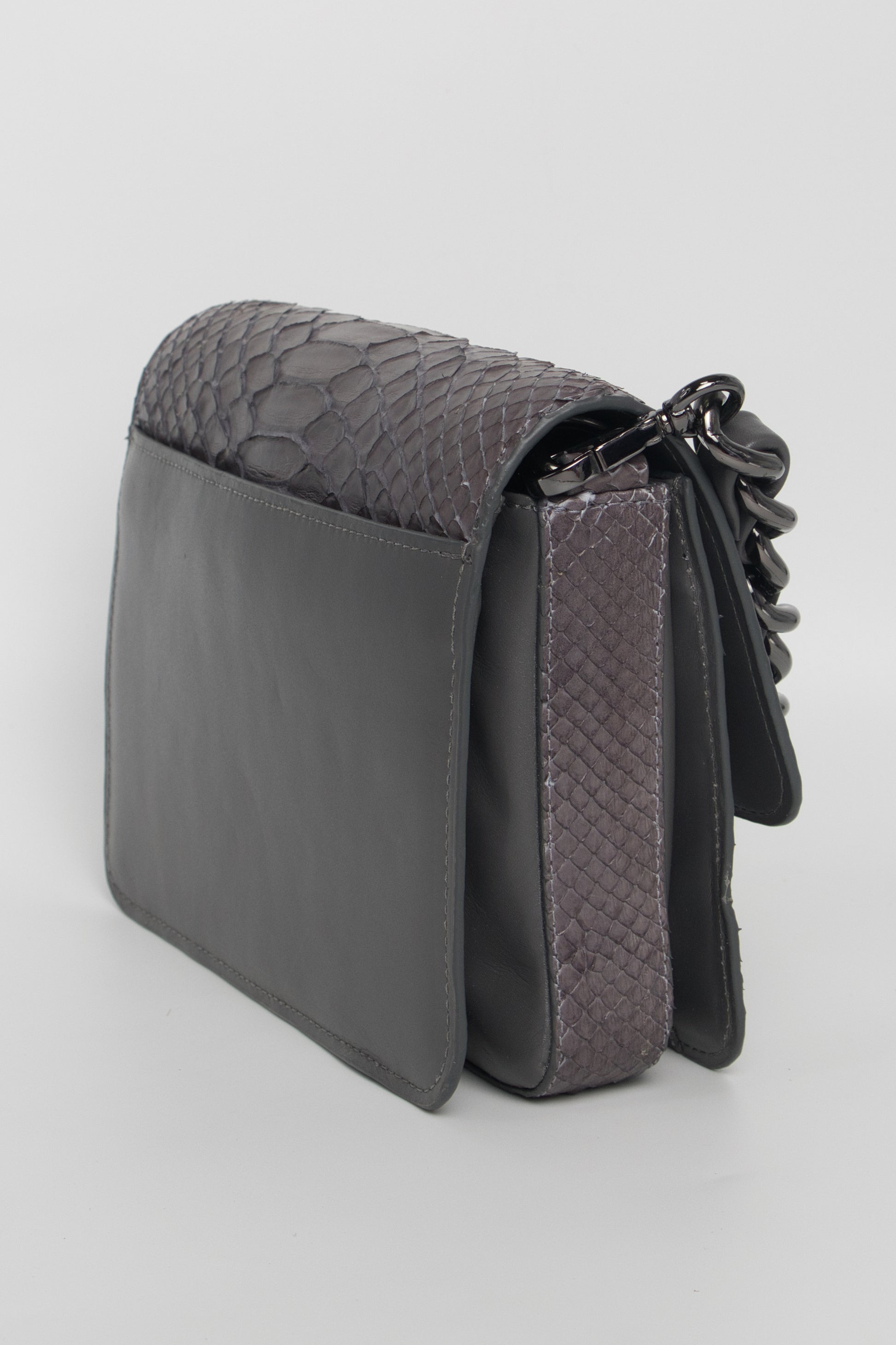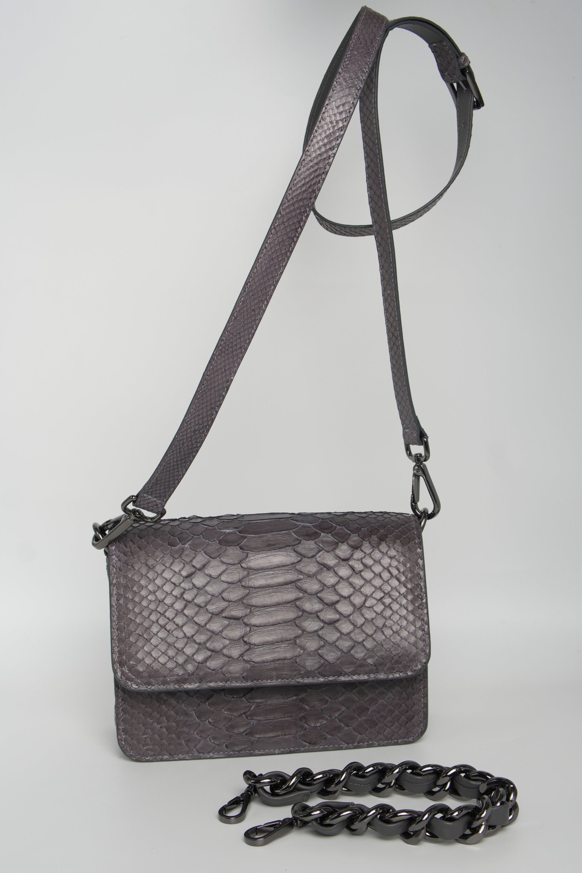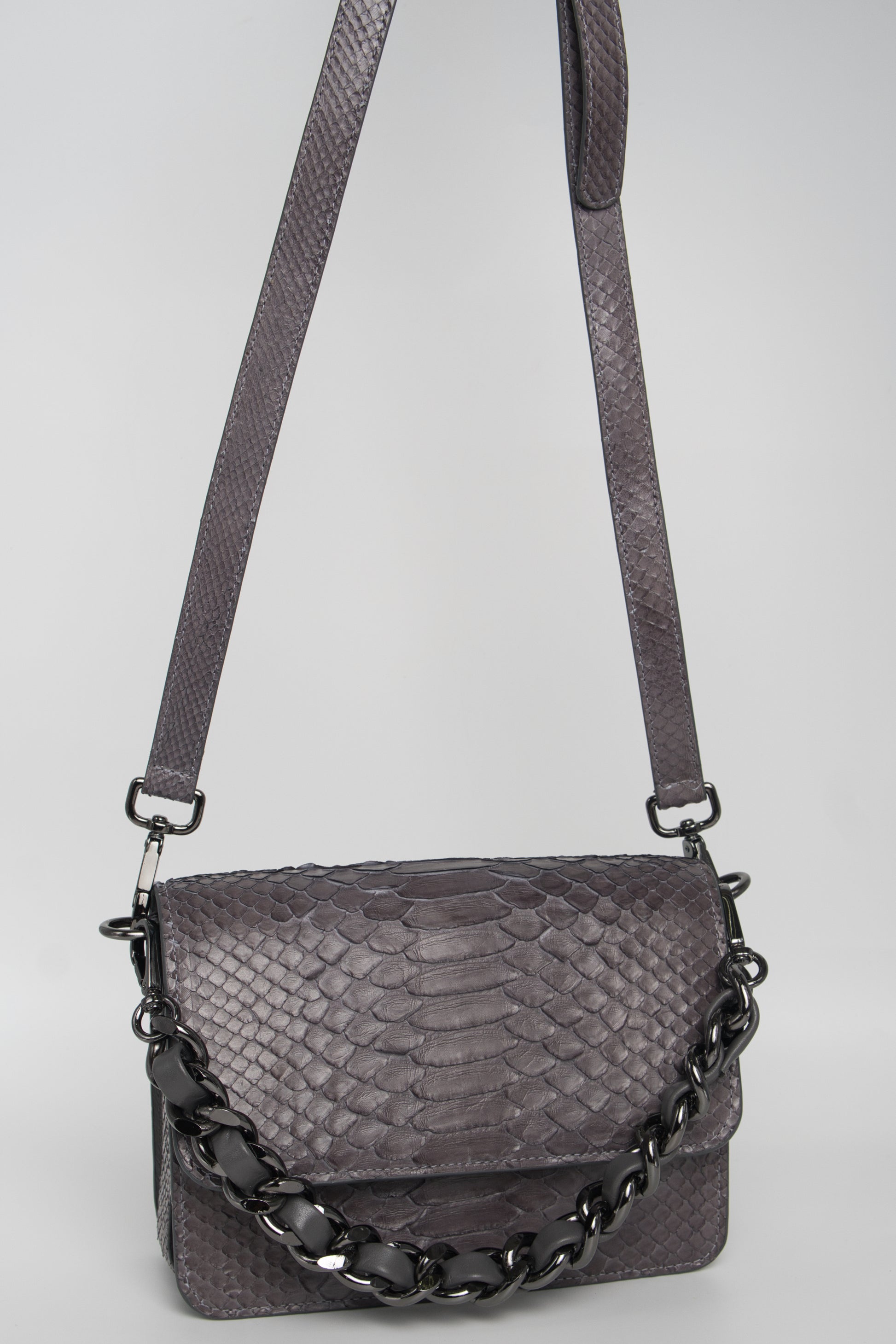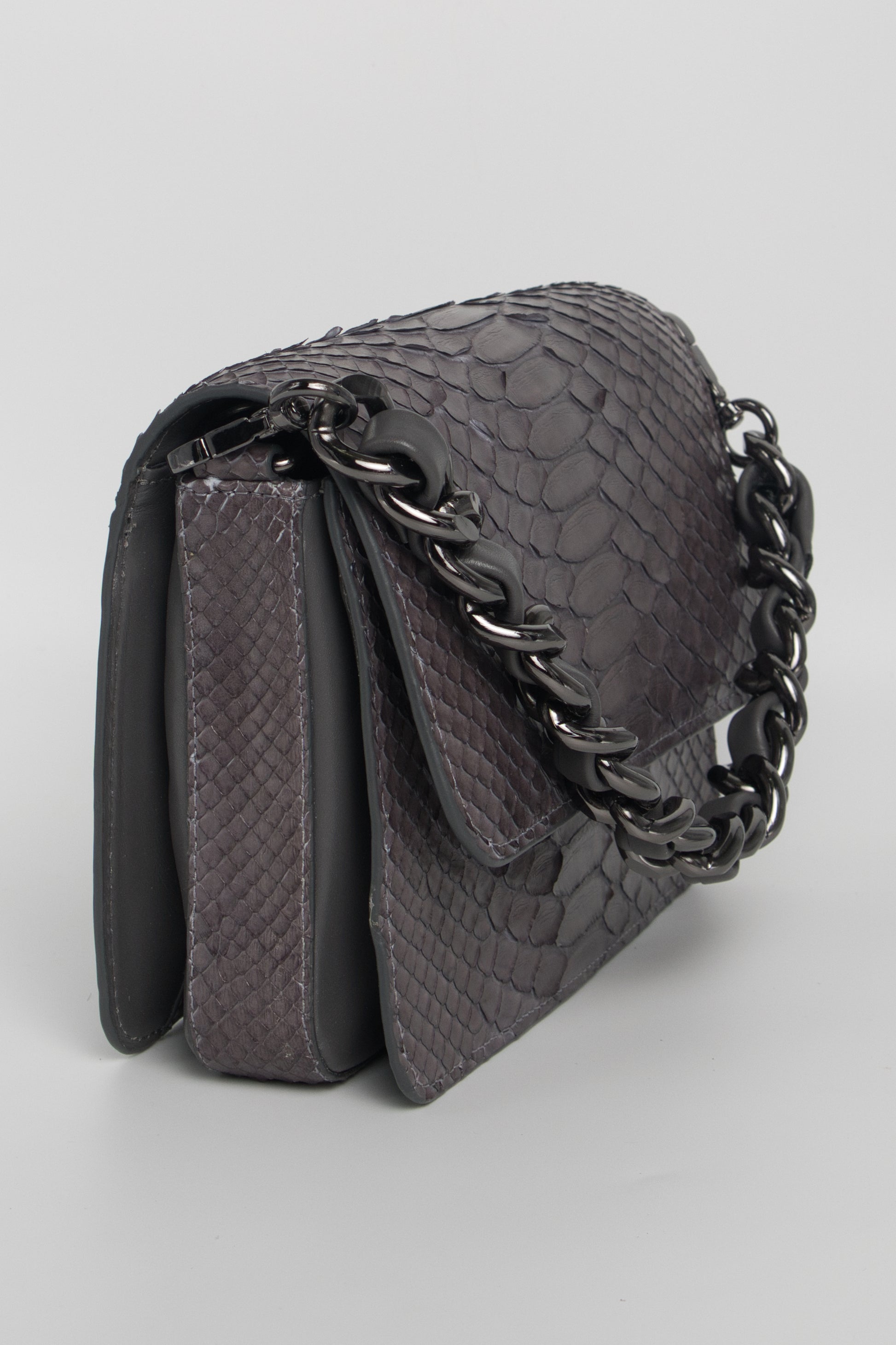 Luxo em sua forma mais pura. A bolsa com corrente traz o python terroso em um tom sutil que conversa com o brilho intenso das correntes douradas. Um encontro perfeito entre textura exótica e sofisticação, que transforma o acessório em protagonista imediato de qualquer produção.